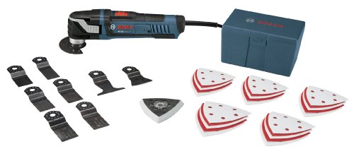 Bosch is an oscillating multi-tool innovation leader. Bosch oscillating tools are designed for cutting, scraping, grinding, and sanding applications on wide variety of materials. The Bosch MX30EK-35 features a powerful 3.0 Amp Motor- Ample power for heavier applications. Tool-less Accessory Change Lever- Durable accessory holder allows quick change of OIS oscillating tool accessories without need for wrench or screwdriver. Versatility- Designed for many applications and materials, including flush-cutting, plunge cutting, sanding, grinding, grout removal and scraping. Variable-Speed Dial- For matching speed to application and material. The Bosch MX30EK-35 Kit Includes: (2) OSC138JF Japanese-Tooth Wood Saw Blade, (2) OSC112 Wood Saw Blade, (1) OSC118F Wood/Metal Plunge-Cut Blade, (1) OSC212F Hammerhead Wood/Metal Plunge-Cut Blade, (1) OSC138MF Metal Saw Blade, (1) OSC312F Wood/Metal Saw Blade, (1) OSC2RSC Rigid Scraper Blade, (1) SDP001 Sanding Pad, (25) Wood and Paint-Sanding Sheets, (1) Accessory Box, and (1) Carrying Case.