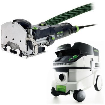 The Domino Joiner, with its revolutionary cutting method, utilizes a patented mortising technique, simple indexing features, and adjustable mortise sizing to make flawless mortises. Powerful 420 watt motor drives the cutter spindle at 23,400 RPM. Use 1 of 3 mortise width adjustments for perfectly fitting joints and fast assembly; easy to adjust while the jointer is operating. Retractable stop pins for quick and precise positioning of the initial domino tenon on both workpieces. Five catch positions at 0, 22.5, 45, 67.5, and 90 degrees, as well as infinitely variable mortising angles from 0 to 90 degrees. Simple, precise mortising fence height adjustment (with scale) offers accurate stops for locating mortising opening in the center of material thicknesses: 16, 20, 22, 25, 28, and 40mm. Quick, precise adjustment for 5 different mortising depths. Robust inner mechanism for consistently accurate routing results. The new CT26 incorporates increased capacity, innovation and versatility into this new design. With the dual mode power activation, the user chooses either a tool activated or manual activated start-up. This CT (Cleantec) unit is extremely mobile, with a sturdy chassis, extra large low abrasion rear tires, and double swivel casters up front to easily negotiate any obstacle. The CT26 dust extractor can be secured in place with a single point foot brake. The filter bags have even been redesigned to be self cleaning. These bags inflate and deflate with the cycling of the unit for maximum suction force and efficiency. An integrated hose garage has been added for easy hose storage. As with all Festool dust extractors, the CT26 utilizes the Sys-Dock system that facilitates the use/storage of one or more Systainers to the top of the unit.. Will work wet or dry with no complex conversion, and is remarkably quiet. Includes: CT 26 E - 6.9 Gallon HEPA Mobile Dust Extractor, HEPA Filter, (1) Fitted Filter Bag, and (1) 1 1/16" x 11.5 Antistatic Suction Hose.