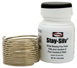 The Lincoln Electric Safety-Silv 45 2-Piece Brazing Kit is a great kit for small jobs involving copper, brass, bronze, steel and stainless steel. The kit comes with 1 oz. of braze wire and 1.75 oz. of Stay-Silv white flux. •A versatile braze alloy that can be used for joining copper, brass, bronze, steel and stainless steel•High strength and ductility•Color is silver to light yellow•Ideal for small jobs•Kit contains 1 oz. of braze wire and 1.75 oz. of Stay-Silv white flux•Made in the USA
