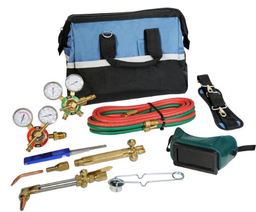 The Hot Max offers a complete oxy-acetylene welding and cutting kit with a canvas tool bag. The Harris Style medium duty torch handle and cutting head are all brass and stainless steel construction. Welds up to 1/2" steel and cuts up to 6" steel (requires larger tips which are not included) and has a 2 Year Limited Warranty. The kit includes the following components: all brass and stainless Harris Style torch handle and cutting head (UL Approved), medium duty oxygen and acetylene regulators (UL Approved), 3/16" X 12-1/2' twin welding hose, one cutting tip: 6290-1 Harris Style, one welding tip: 23A90-1 Harris Style, goggles with no. 5 lens, single flint striker and standard tip cleaner set.