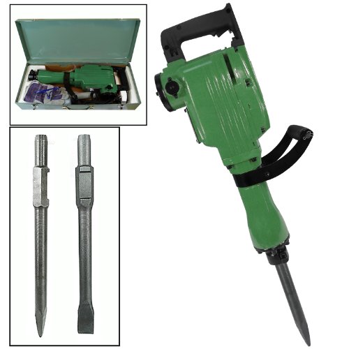 Super heavy-duty electric jack-hammer for serious demolition jobs Industrial grade 1-3/4 HP 1240-watt 120V electric motor; 1400 RPM no-load speed Includes two large hardened Chrome-vanadium steel chisels 360-degree swivel auxiliary handle for maximum versatility and ease-of-use Complete with rugged steel storage and carry case