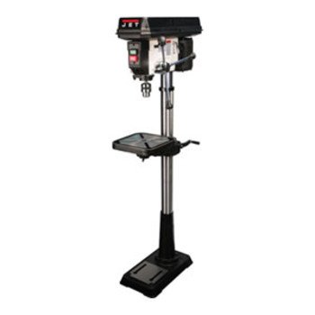 This JET 16-speed drill press has a 115V, single-phase motor. 16 spindle speeds ensure proper application for a variety of different jobs. Speeds (qty.): 16, Vertical Stroke: 3 3/8in., Stand Included: Yes, Drilling Capacity (in.): 5/8 cast iron; 1/2 mild steel, Dimensions L x W x H (in.): 26 x 14 x 64, Chuck Size (in.): 5/8, Light Included: No, HP: 3/4, Volts: 115, Worktable L x W (in.): 11 x 19 1/2, 360deg Head Swivel: Y, Speed (RPM): 200-3,630, Swing: 15 in., Draw Bar: No