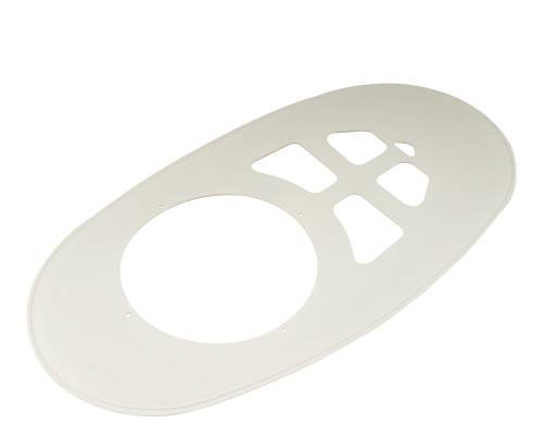 * Not For Use With Elongated Toilets. Ideal For Retrofitting New 1.6 Gallon Toilets This Base Plate Will Cover The Exposed Flooring Left By Larger Toilets. White Plastic Construction. Helps Stabilize Toilet Installation. Round Nose Length: 22-1/4""